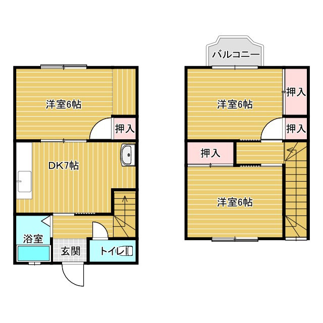 188号線近く、Kメゾネットタイプの3DK。ペット相談。 |